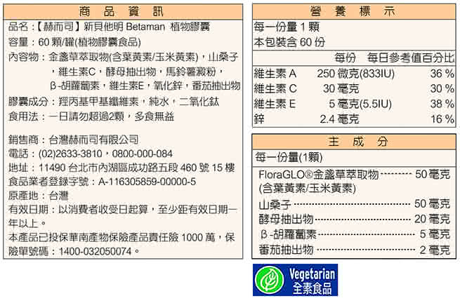 【赫而司】新貝他明Betaman兒童葉黃素植物膠囊(60顆-罐)便宜,人氣,實用,最新,熱賣,情報,最新,暢銷,比價,推薦,必買,限定,熱門,開箱,評價,特惠,排行,限時,經典,熱賣下殺
